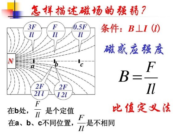 描述磁场强弱和方向的基本物理量。是矢量,常用符号B表示。磁感应强度也被称为磁通量密度或磁通密度。在物理学中磁场的强弱使用磁感强度(也叫磁感应强度)来表示,磁感强度大表示磁感强;磁感强度小,表示磁感弱。